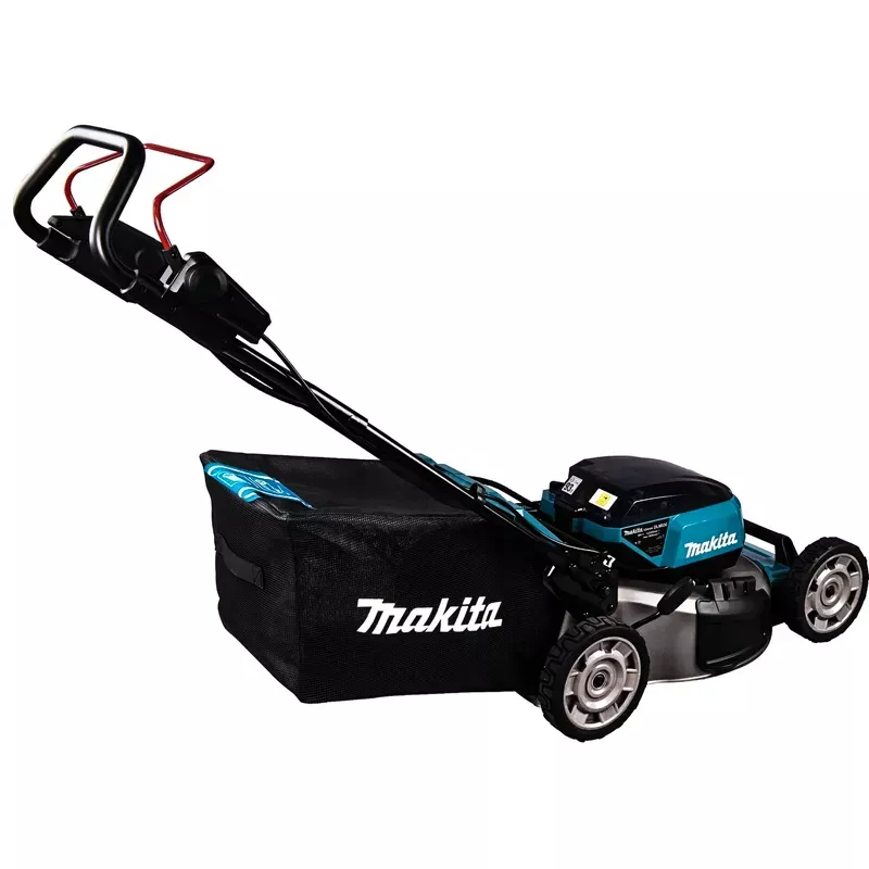 Аккумуляторная газонокосилка оснащена бесщеточным двигателем мощностью 1600 Вт, который обеспечивает ее высокую производительность. Для работы подойдут батареи Makita напряжением 18 В. В отсек одновременно можно установить до четырех аккумуляторов. Когда заряд первой пары закончится, можно переключиться на вторую пару, повернув специальный переключатель. Таким образом, время работы без подзарядки значительно увеличивается.