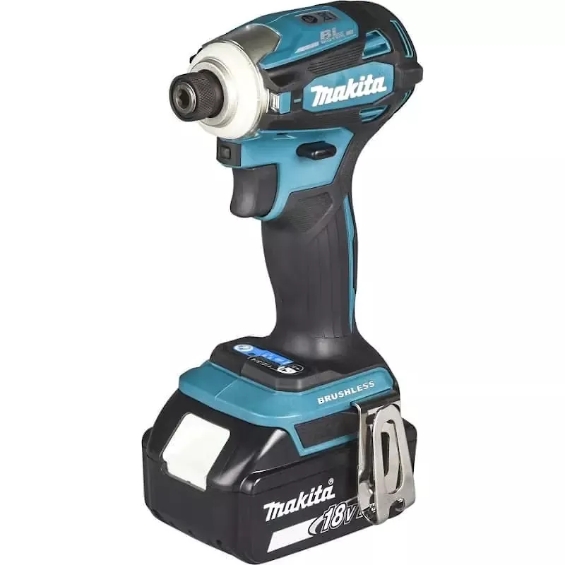 Аккумуляторный ударный шуруповерт Makita DTD172RTJ (2 x 5 Ач, ЗУ) работает от двух аккумуляторов, которые крепятся с помощью слайдера. Индикатор уровня заряда облегчает использование.