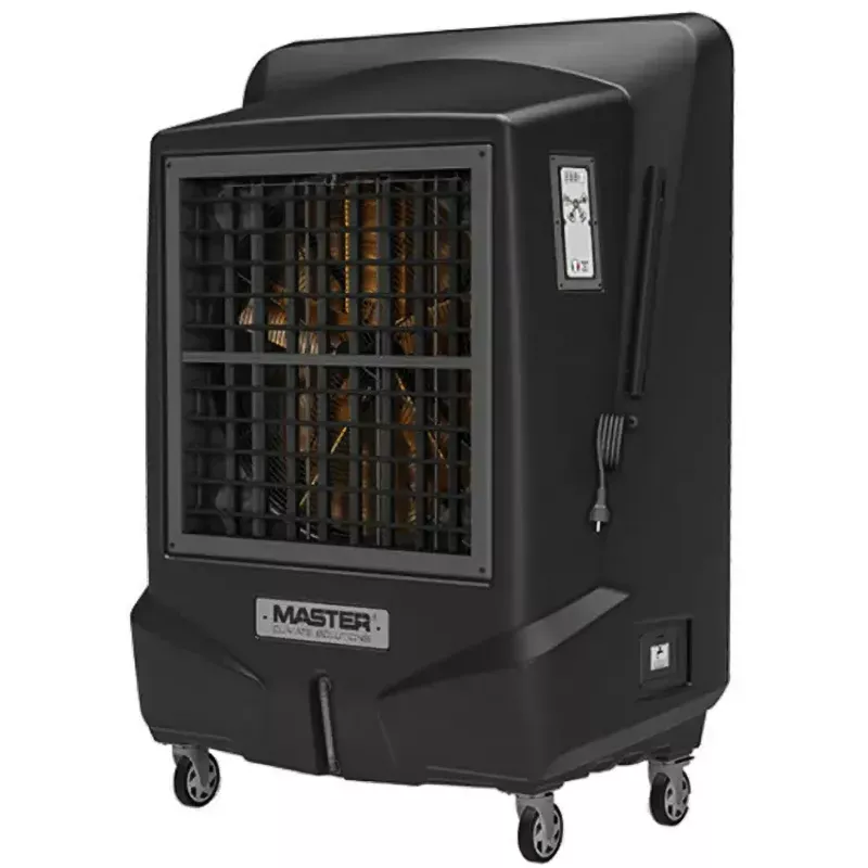 Охладитель воздуха MASTER BC 221 имеет переднюю панель для выхода воздушного потока, который достигает 22 000 кубических метров в час. Вы можете регулировать скорость и направление воздуха с помощью пульта дистанционного управления или на самом охладителе.