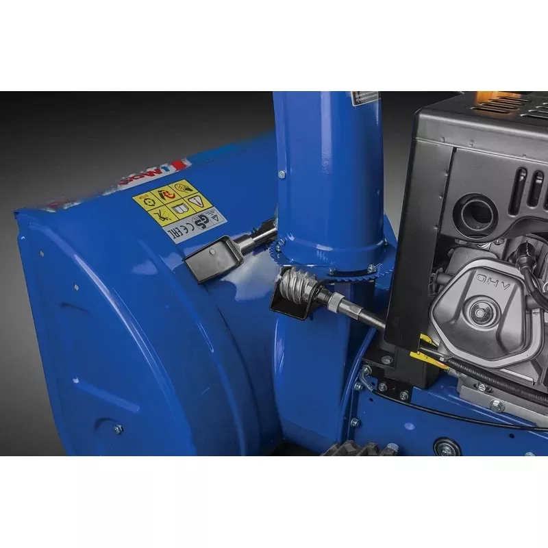 Металлический желоб выброса с системой быстрого разворота. Дает возможность просто и моментально менять направление выброса снега на 190 градусов при помощи рукоятки, расположенной на панели управления.