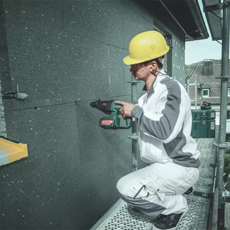 Блок аккумуляторного перфоратора оснащен технологией Ultra-M, которая обеспечивает максимальную мощность, и индикатором заряда батареи.