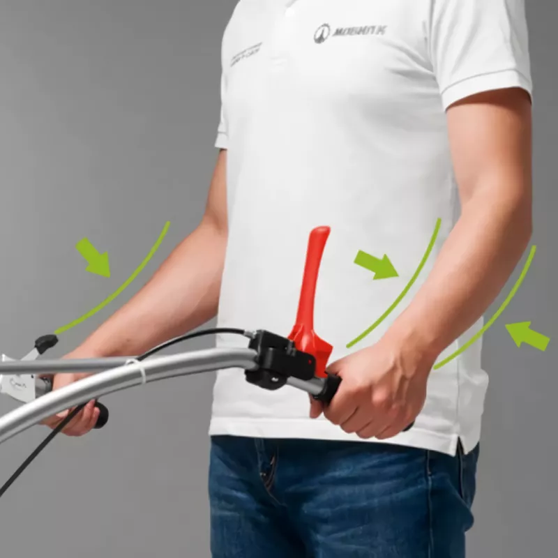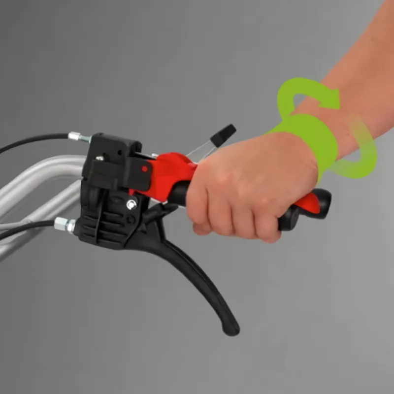 На аппарат установлен рычаг сцепления производства итальянской компании Start. Он имеет изменяемое плечо, за счет чего при нажатии на него нет нагрузки на кисть. Ручки управления выполнены из антивибрационного сплава. Это повышает комфорт при работе.