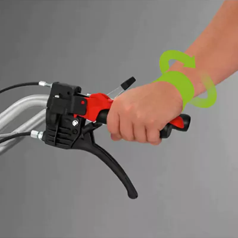 Шестеренчатая трансмиссия обеспечивает широкий выбор скоростей движения — пять передних передач и две задние. На пониженной передаче удобно выполнять уборку мокрого снега или расчищать территорию с неровной поверхностью. Колесные протекторы с глубоким рельефом обеспечивают отличное сцепление с дорогой при любой погоде, даже в гололедицу.