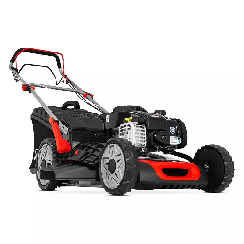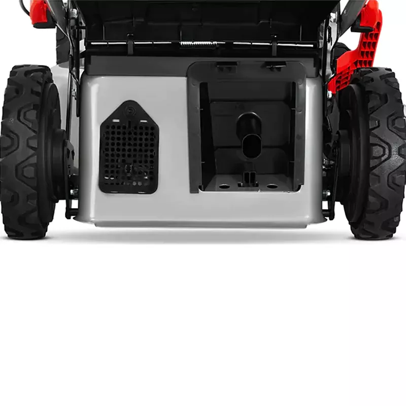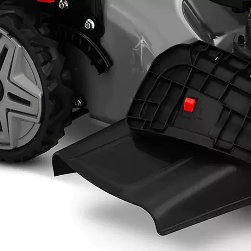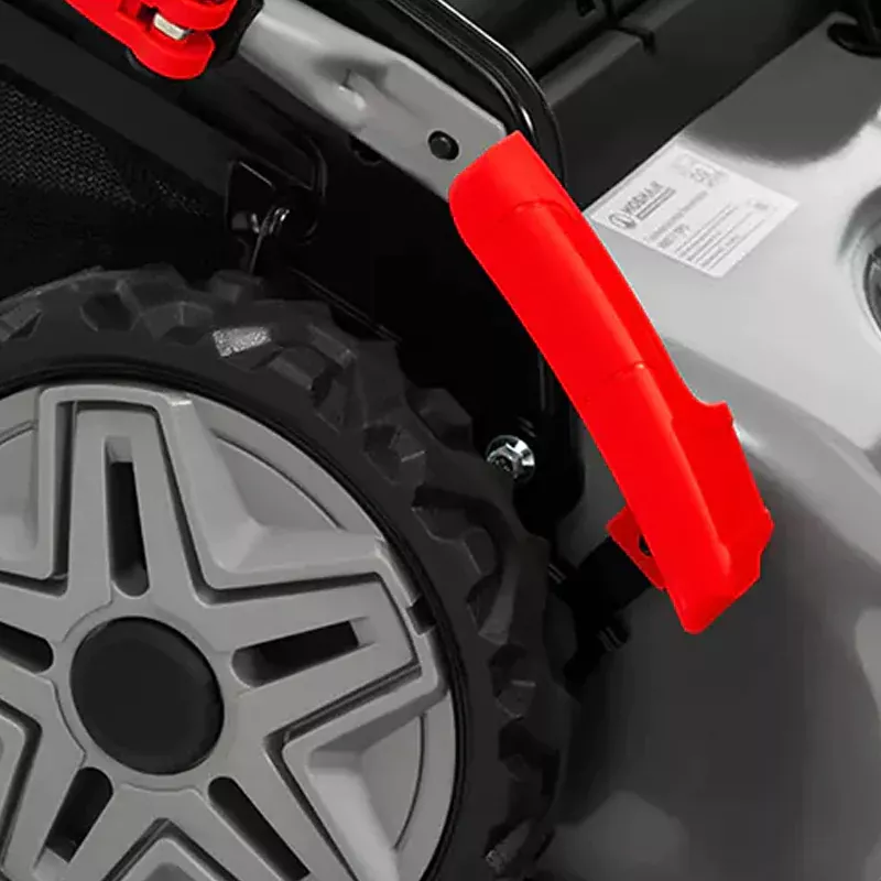 Рукоятка газонокосилки компактно складывается. За счет этого модель удобно хранить в маленьких помещениях. Например, прихожей комнате загородного дома или в узком коридоре. Помимо этого, в сложенном виде бензиновая газонокосилка помещается в багажник легкового автомобиля, что упрощает её транспортировку.