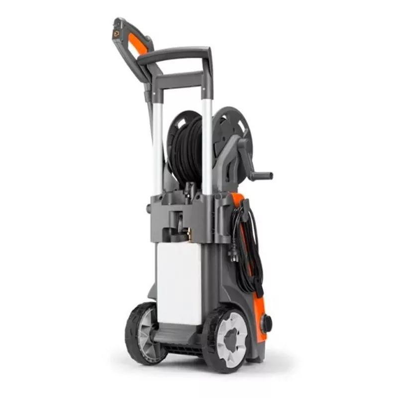 Полупрофессиональную мойку легко транспортировать с помощью телескопической алюминиевой рукоятки. Держатель компактно складывается, чтобы при хранении агрегат не занимал много пространства. Помимо этого, в минимойке Husqvarna PW 480 также предусмотрена и дополнительная рукоятка. Она находится в самом низу возле колес.
