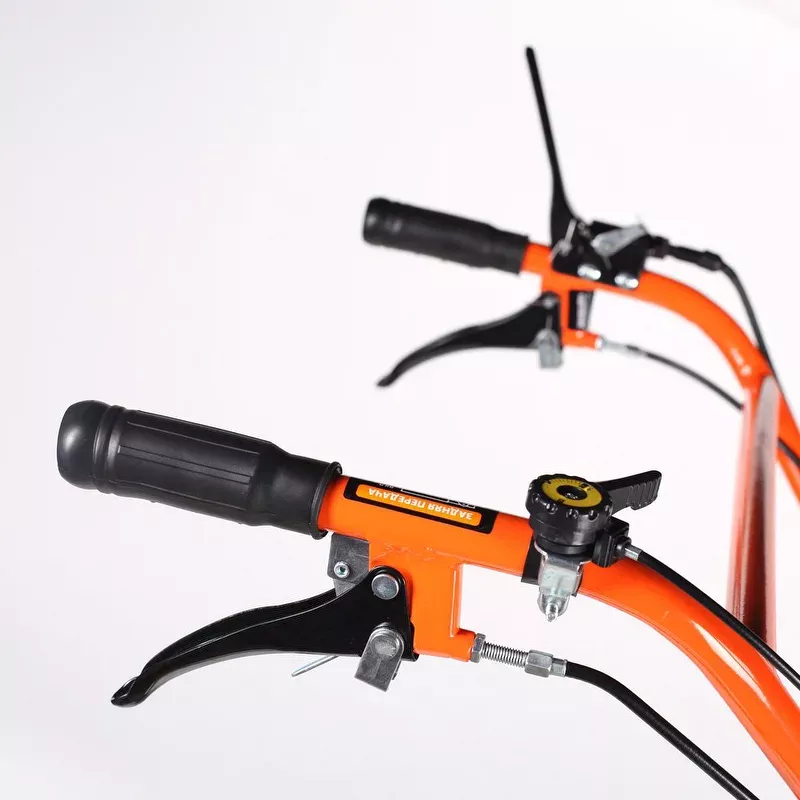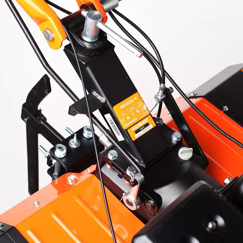 Все элементы управления движением мотоблока Patriot Nevada 9 находятся на рукояти прямо перед вашими глазами. К ним не надо тянуться, и ничего не будет отвлекать вас от работы. Рукояти имеют резиновые накладки, что положительно сказывается на контроле за аппаратом. Руль можно регулировать по высоте и по плоскости. Это позволяет подобрать оптимальные настройки под ваш рост и конкретную задачу.