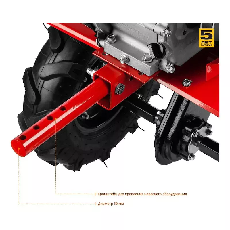 Отдельно можно приобрести плуг, снегоочиститель, щетку, лопату, фронтальную косилку, тележку и другое оборудование. Аксессуары крепятся к мотоблоку и расширяют его функционал.