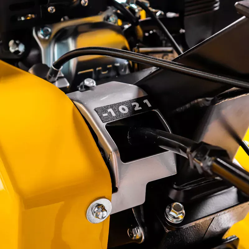 Модель укомплектована защитными крыльями, они предотвращают вылет земли и камней в оператора, что значительно сокращает вероятность получения травм в процессе работы.