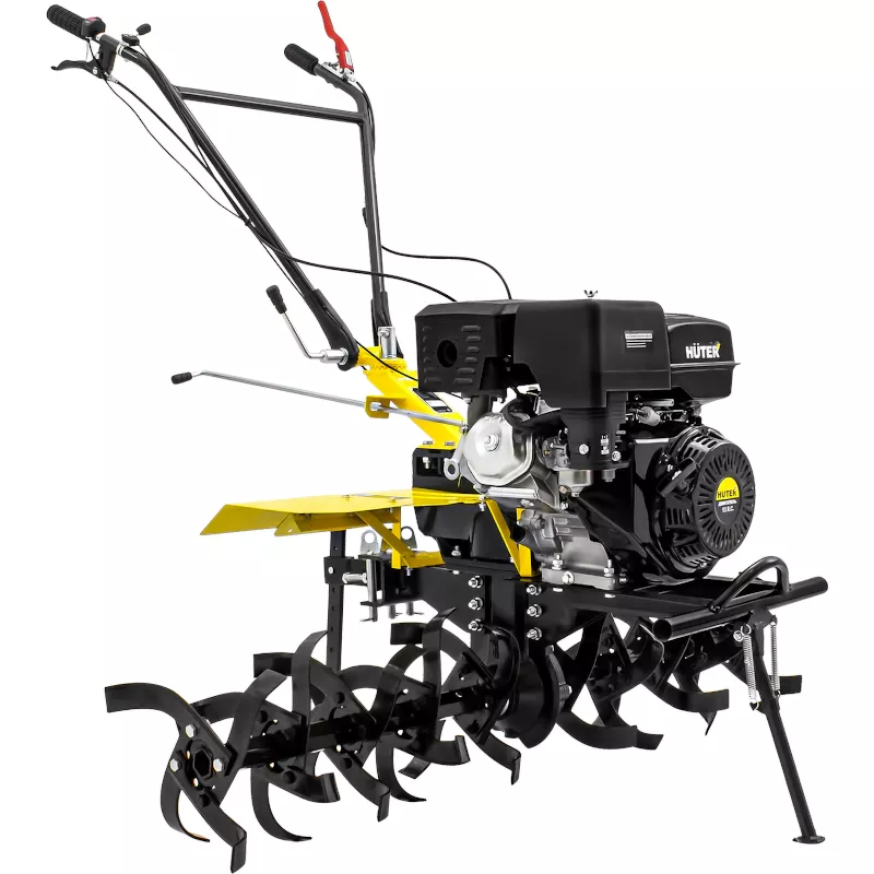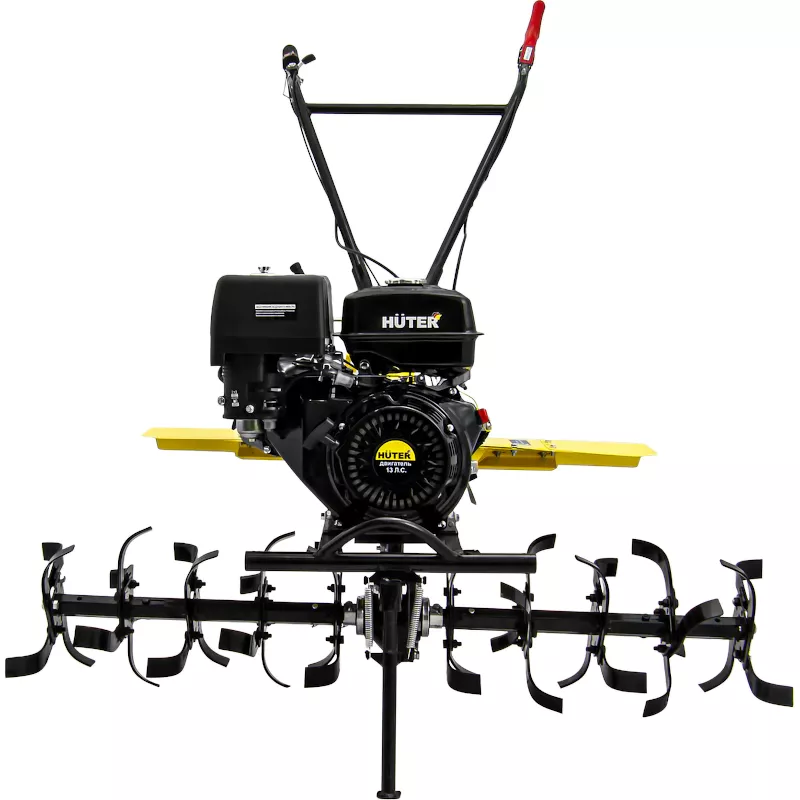 Двигатель сельскохозяйственной машины Huter MK-13000P заводится с помощью ручного стартера. Автоматическая система защиты останавливает работу прибора, когда уровень масла в картере достигает критической отметки. Благодаря чему удается избежать преждевременного износа механизма, который возникает из-за недостаточной смазки деталей.