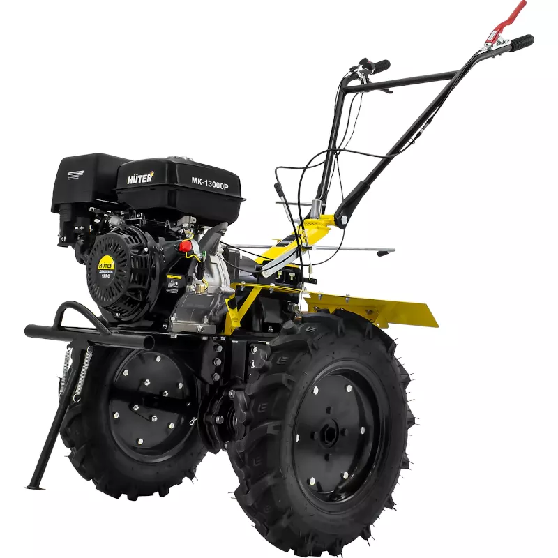Мотоблок Huter MK-13000P оснащена бензиновым двигателем мощностью 13 л. с. Ширина захвата инструмента достигает 140 см, благодаря чему вы можете обрабатывать большие площади за минимальное количество проходов.