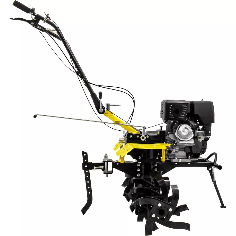 Бензиновый мотоблок предназначен для бытового и полупрофессионального использования, с его помощью вы можете разрыхлить, прополоть или выровнять почву на садовом участке. Помимо стандартных фрез, идущих в комплекте с инструментом, конструкция машины позволяет устанавливать дополнительную оснастку. Например, такое навесное и прицепное оборудование, как сошник, плуг, косилка или телега.