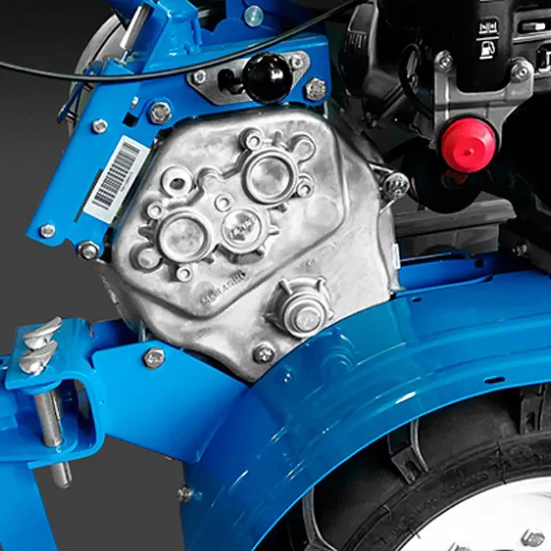 Обтекаемая форма редуктора практически не задевает почву. За счет этого мотокультиватор не оставит широких борозд после использования, что способствует равномерному разрыхлению земли.