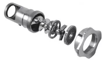 Для получения фарша разной степени измельчения мясорубка снабжается набором решеток с различным диаметром отверстий.