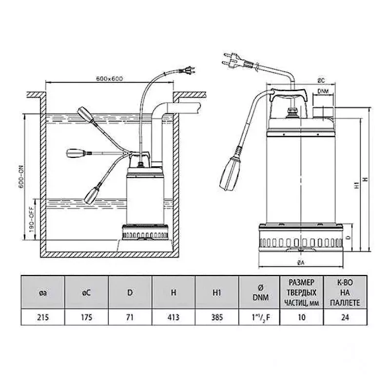 DRENAG 1000 M-NA – это продукт итальянской компании DAB, которая вот уже много лет славится качеством производимой продукцией. Этот насос является погружным и работает непосредственно в жидкости, перекачивая ее. Использовать насос DRENAG 1000 M-NA можно не только в быту и хозяйстве, но и на строительных проектах, где, как известно, вода имеет свойство смешиваться с пылью и песком, а также другими песочными примесями. Перекачать он может чистые стоки, дождевые и грунтовые воды. Так как для производства насосной продукции Dab используют высококачественные материалы, этот насос не стал исключением и выполнен он полностью из нержавеющей стали: Корпус, рабочее колесо, фланец двигателя, фильтр, крышка фильтра, статор двигателя, наружный корпус с ручкой и крышка отсека – все это выполнено из нержавеющей стали. Для более удобной транспортировки, насос оснащен ручкой. Это позволит без труда и повреждений переносить устройство с места на место. Насос охлаждается при помощи жидкости, которую он перекачивает. Оптимальная температура для работы насоса колеблется от 0 до 35 градусов. Установку производить в вертикальном положении.