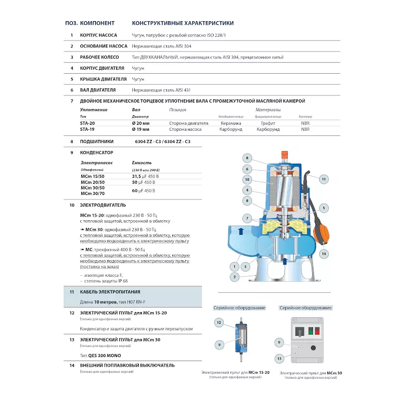 Одноканальные погружные электронасосы серии МС разработаны для откачки загрязненных и сточных вод, как в бытовой, так и в промышленной области. Электронасосы МС оснащены одноканальным рабочим колесом, заключенным в просторную кольцевую камеру, защищенную корпусом насоса и основанием, которое имеет обработанную поверхность, всасывающий патрубок, установленный в основании насоса, непосредственно соприкасается с накачиваемой жидкостью.