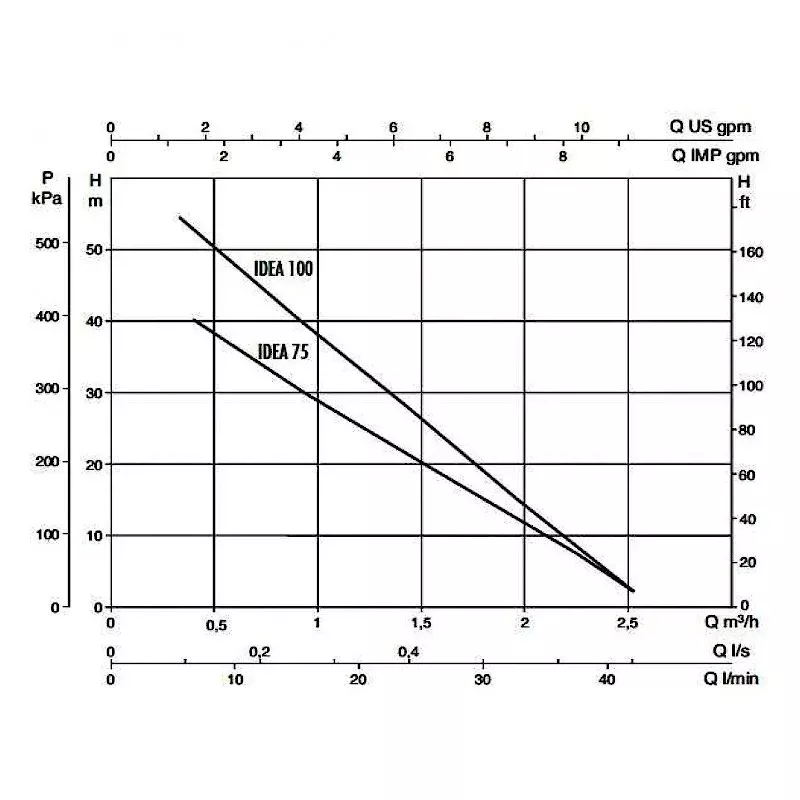 Насос IDEA 75 T разработан специально для индивидуальных и коллективных систем водоснабжения. Для скважин диаметром 4" и более. Рабочий диапазон: производительность – от 0,4 до 2,4 куб.м/ч, напор – до 52 м. водяного столба. Максимальное рабочее давление: максимальная глубина погружения – 20 м. Перекачиваемая жидкость. Состав: чистая, без твердых включений и минеральных масел, не вязкая, химически нейтральная, по характеристикам аналогичная воде. Температура: от 0°С до +35°С. Основные материалы. Гидравлический корпус и основание двигателя – из чугуна; рабочее колесо – из бронзы; кожух двигателя, вал и крепежные элементы – из нержавеющей стали. Особенности. Гидравлическая часть содержит одно рабочее колесо "вихревого" типа. Двигатели однофазных моделей оборудованы встроенным конденсатором. Для трехфазных двигателей требуется внешняя защита от перегрузки. Монтаж. Вал двигателя – в вертикальном положении. Комплект поставки: насос в сборе с кабелем длиной 15 м и нейлоновым тросом длиной 15 м. Стандартное электропитание: 1x230 В, 3x400 В. Степень защиты: IP 68. Класс изоляции: F.