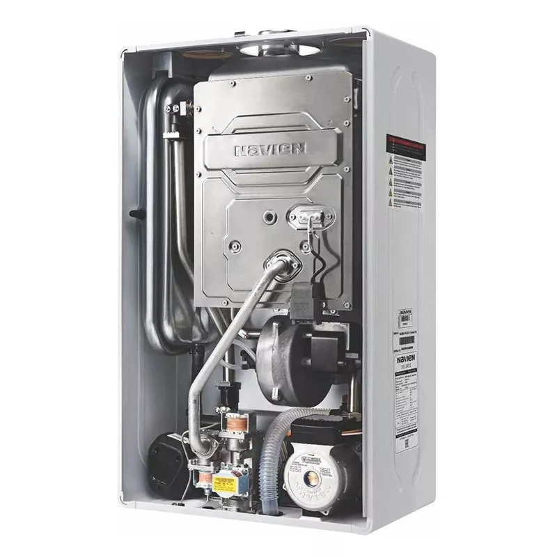 Котел газовый Navien Deluxe S-20K мощностью 20 кВт подходит для нагрева воды в ГВС и отопления помещения площадью до 200 м2. Регулировка температуры происходит с помощью пульта управления, который поставляется в комплекте.