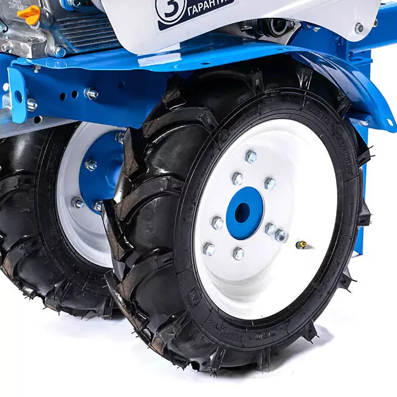 Бензиновый мотоблок Нева МБ2 МультиАГРО-ZS GB225 весит 92 кг и обладает максимальной глубиной вспашки 20 см. Поставляется в комплекте с двумя большими пневматическими колесами транспортного типа, которые упрощают перемещение модели по участку.