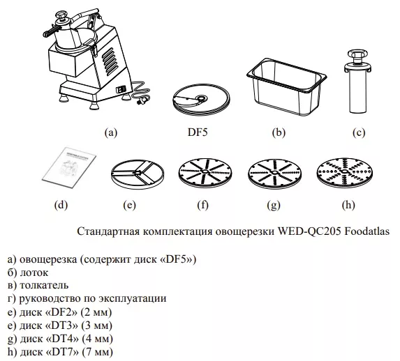 Комплект поставки ножей слайсер 2 и 5 мм, шинковка 3, 4 и 7 мм