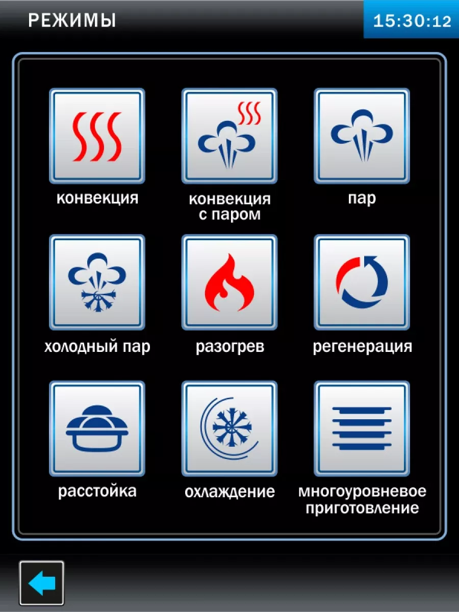 Автоматика обеспечивает быстрый выход пароконвектомата на рабочий режим