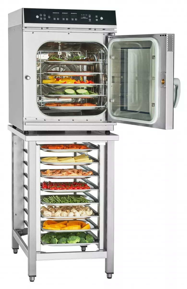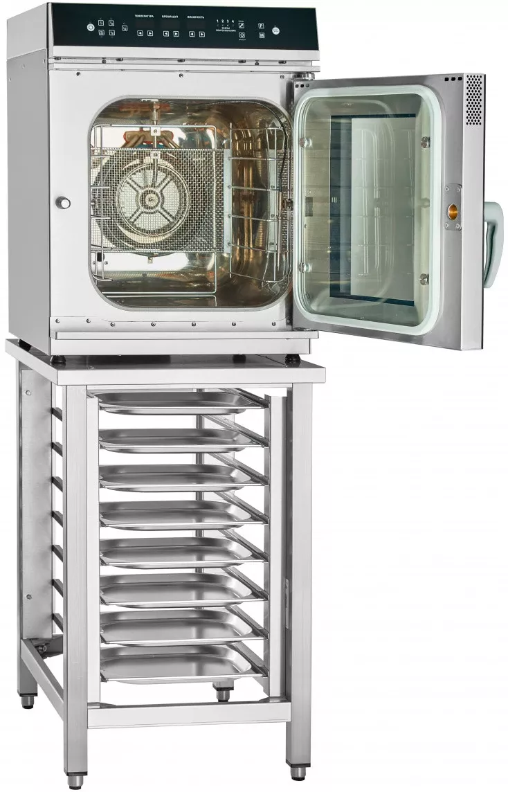 Благодаря своим малым габаритам пароконвектомат занимает минимальную рабочую площадь на кухне, его можно разместить на любом столе или на подставке.