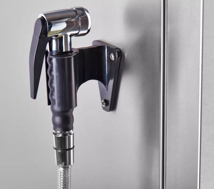 Двухходовый механизм открывания двери обеспечивает безопасность персонала от воздействия горячего пара