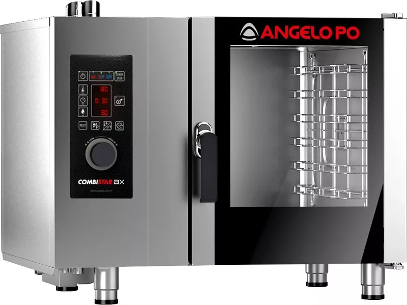 Пароконвектомат ANGELO PO BX61E серии CombiStar BX предназначен для приготовления различных блюд методом обработки паром и горячим воздухом на предприятиях общественного питания и торговли. Такое оборудование может заменить плиту, жарочный и духовой шкаф, конвекционную печь, опрокидывающуюся сковороду, пищеварочный котел и др.