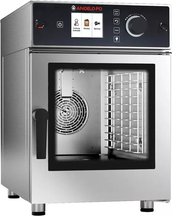 Пароконвектомат Angelo Po CF61E предназначен для приготовления различных блюд методом обработки паром и горячим воздухом по отдельности или комбинированно. При одновременном приготовлении различных блюд каждое из них сохраняет свой вкус и аромат, большинство витаминов и минеральных веществ, выглядит аппетитным и свежим.Особенности