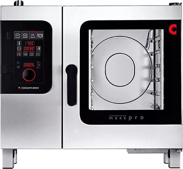 Пароконвенктомат Convotherm Maxx Pro easyDial 6.10 EB предназначен для приготовления широкого ассортимента блюд на предприятиях общественного питания. С помощью подобного оборудования можно выпекать сдобные изделия, пироги, готовить сочные стейки, рыбу на пару и т.д.
