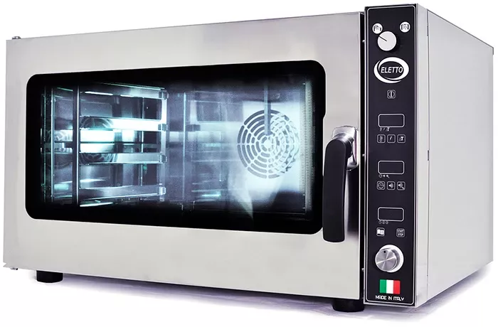 Пароконвектомат Eletto L 0511E (щуп, душ в комп.) предназначен для приготовления продуктов питания в различных режимах, а также для выпечки хлебобулочных и кондитерских изделий на предприятиях общественного питания.