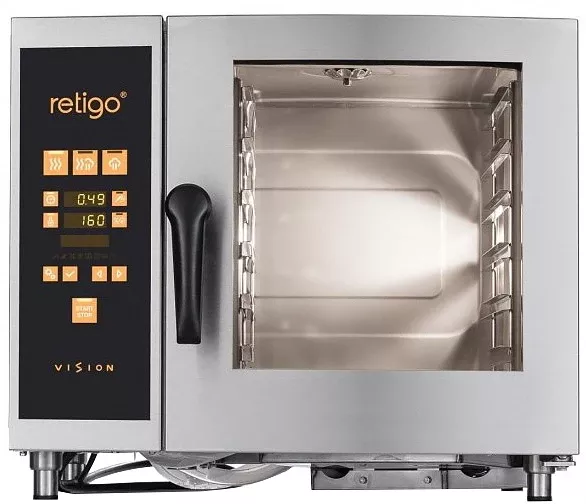 Пароконвектомат Retigo O623i предназначен для приготовления широкого ассортимента блюд на предприятиях общественного питания. С помощью подобного оборудования можно выпекать сдобные изделия, пироги, готовить сочные стейки, рыбу на пару и т.д.