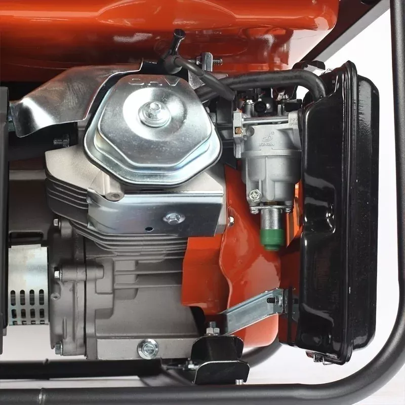 Оснащен двигателем с верхним расположением клапанов [OHV], что значительно увеличивает ресурс, снижает выхлоп и уровень шума. Датчик контроля масла исключает запуск и работу генератора при отсутствии или низком уровне масла в картере. Синхронный электрогенератор с системой автоматической регулировки и медными обмотками обеспечивает стабильное выходное напряжение и частоту тока.