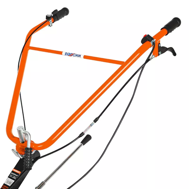 Для работы на тяжелых глинистых грунтах и целине можно использовать пониженную передачу – так потребуется меньше усилий для удержания машины, агрегат не будет резко дергаться и подпрыгивать. Большой бензобак объемом 3,6 л позволит реже останавливаться на дозаправку. Управлять мотоблоком не сложно – все рычаги выведены на рукоятки. При необходимости устройство можно доукомплектовать пневмоколесами и любым навесным оборудованием – от окучника до картофелекопалки.