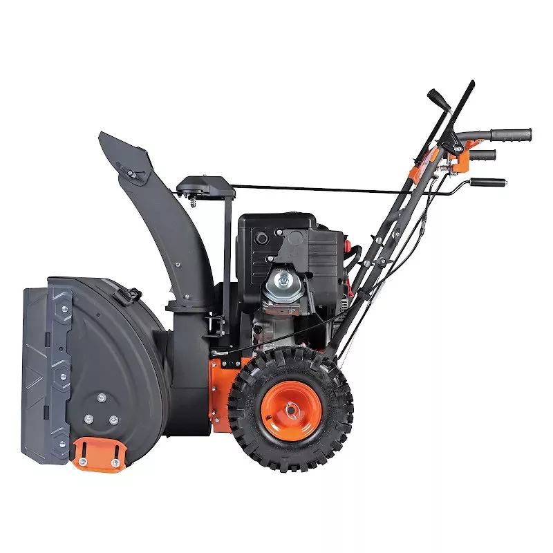 Большой ковш позволяет захватывать сугробы высотой до 53 см. Это поможет сохранить ухоженный вид участка даже после обильного снегопада.