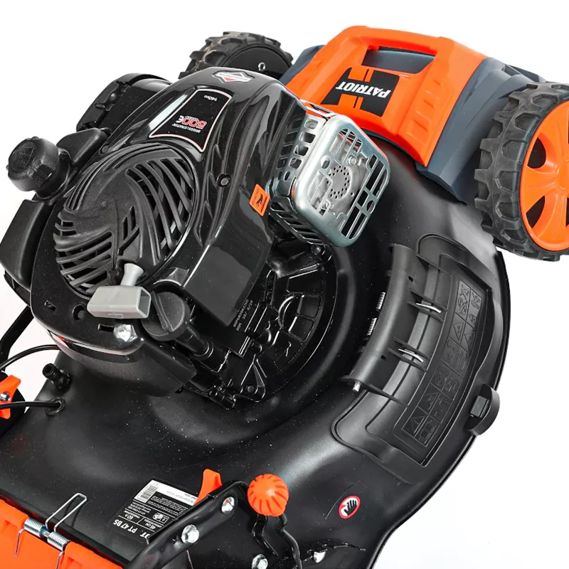 В газонокосилке Patriot PT 47BS установлен мотор американского производителя Briggs&Stratton серии 500E. Поплавковый карбюратор поддерживает необходимый уровень топлива. Механизм Prime _N Pull облегчает зажигание холодного двигателя, а электронная система Magnetron обеспечивает запуск без лишних манипуляций.