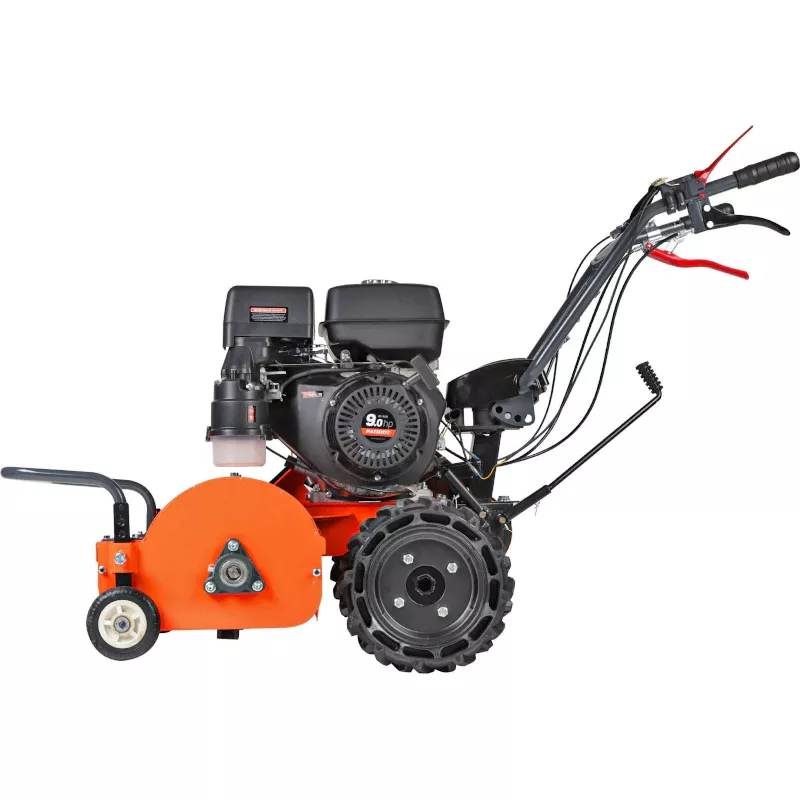 Бензиновая бурьянокосилка PATRIOT RX900 представляет собой самоходный измельчитель с шириной обработки 60 см для борьбы с зарослями сорняков, сухостоем, борщевиком, грубой травой. Устойчивая конструкция оснащена четырьмя бескамерными колесами и крепким бампером, сминающим перед собой высокие стебли. Четырехтактный двигатель мощностью 9 л.с. обеспечивает высокую частоту вращения ножевого вала до 2000 об/мин, что позволяет измельчать любую встречающуюся на пути растительность.