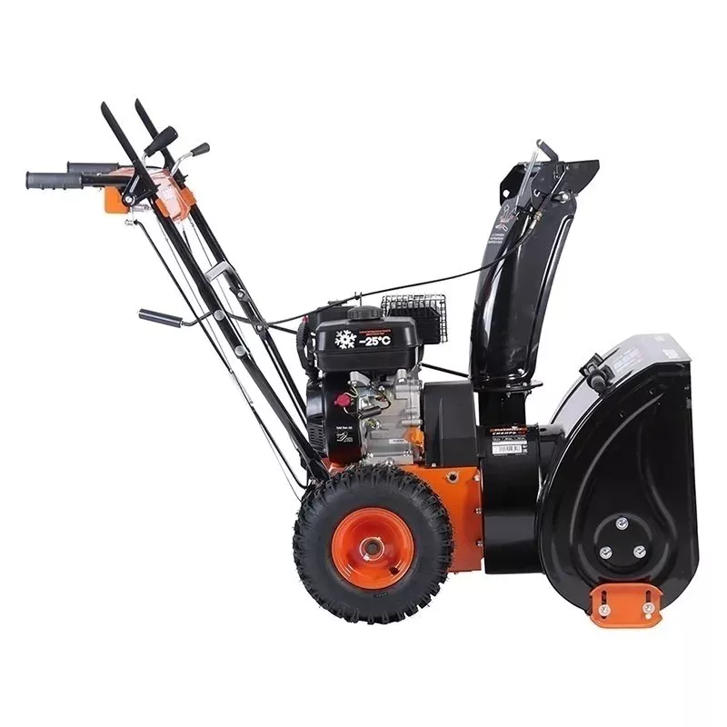 Самоходный снегоуборщик предназначен для быстрой очистки территории от высоких и плотных сугробов. Усиленный металлический ковш выдерживает большие нагрузки, он оснащен опорными лыжами, которые позволяют регулировать подъем шнека. Если вы используете машину на неровной поверхности, рекомендуется установить максимальный зазор между землей и заборным механизмом.