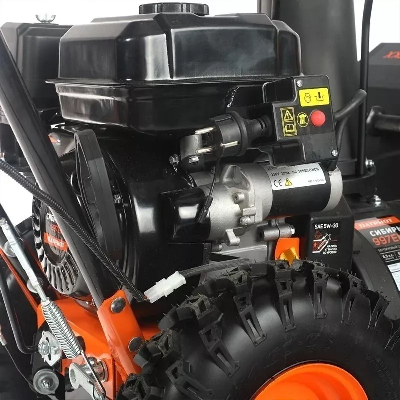 Самоходная снегоуборочная машина Patriot Сибирь 997 ЕKX оснащена колесами тракторного типа. Глубокий рельефный рисунок обеспечивает хорошее прохождение как по обледеневшей поверхности, так и по рыхлым высоким сугробам.