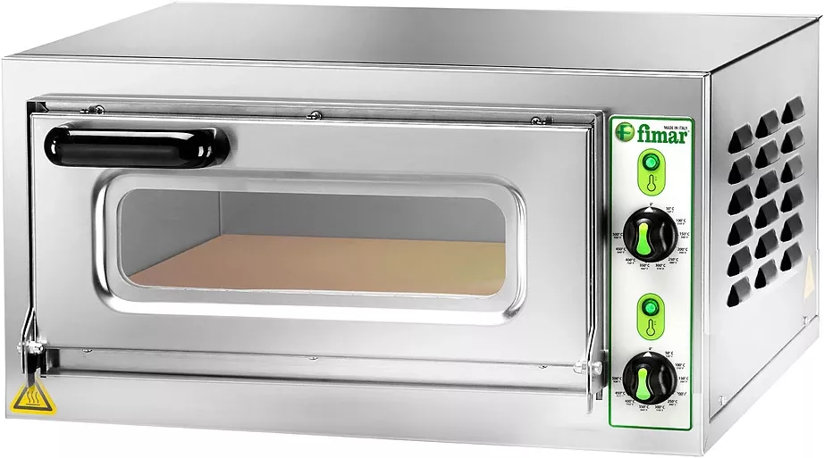 Печь для пиццы Fimar, изготовленная из высококачественной стали, отличается высокой производительностью.