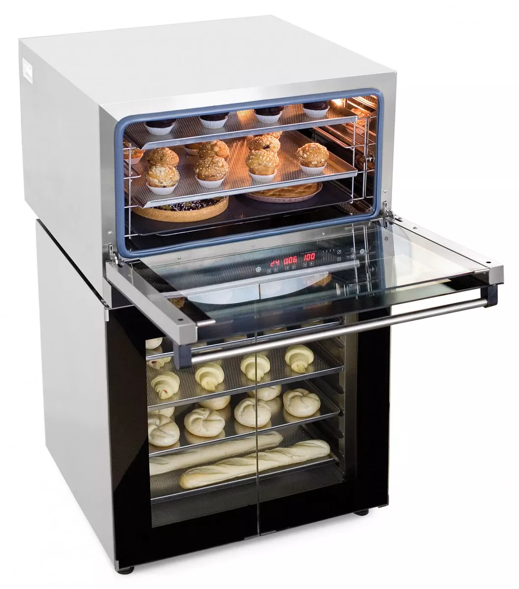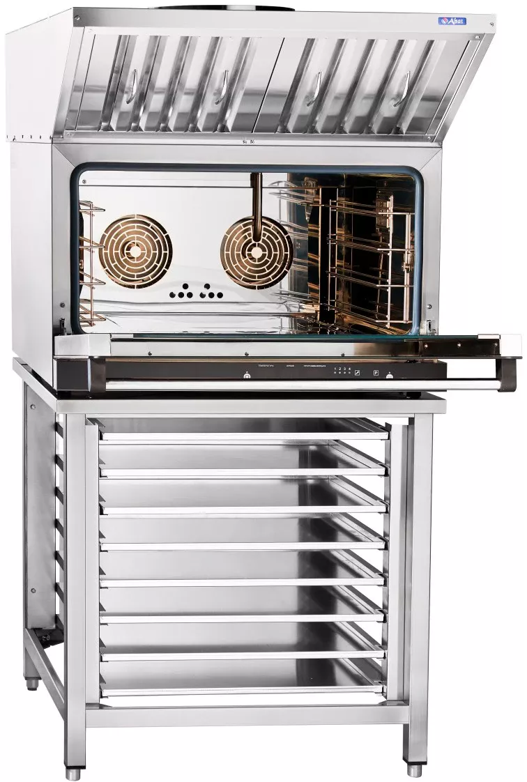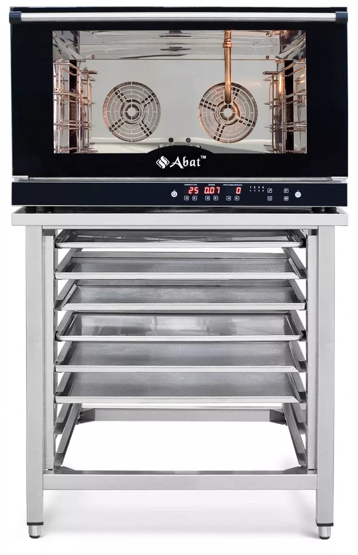 Для удобства эксплуатации конвекционная печь устанавливается на шкаф расстоечный ШРТ-8 (Abat) или на подставку.
