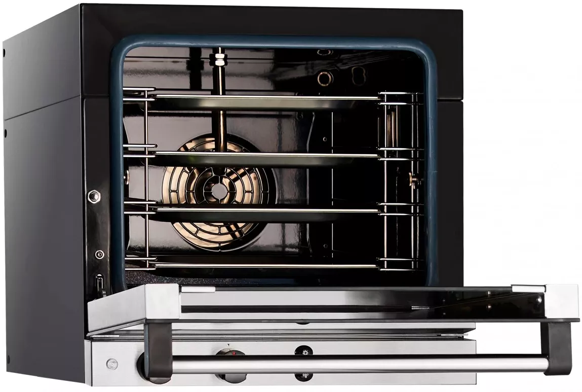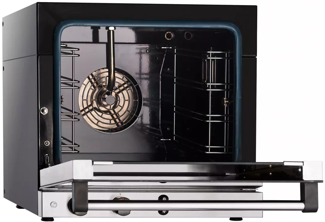 Термообработка продуктов осуществляется за счет равномерной циркуляции горячего воздуха внутри рабочей камеры.