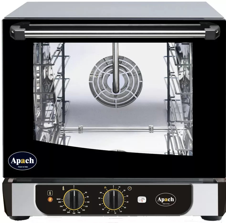Печь конвекционная электрическая Apach AD44M предназначена для выпекания или разогрева кондитерских и хлебобулочных изделий, готовых блюд, замороженных или предварительно выдержанных в расстоечном шкафу заготовок из теста на предприятиях пищевой промышленности, общественного питания и торговли.