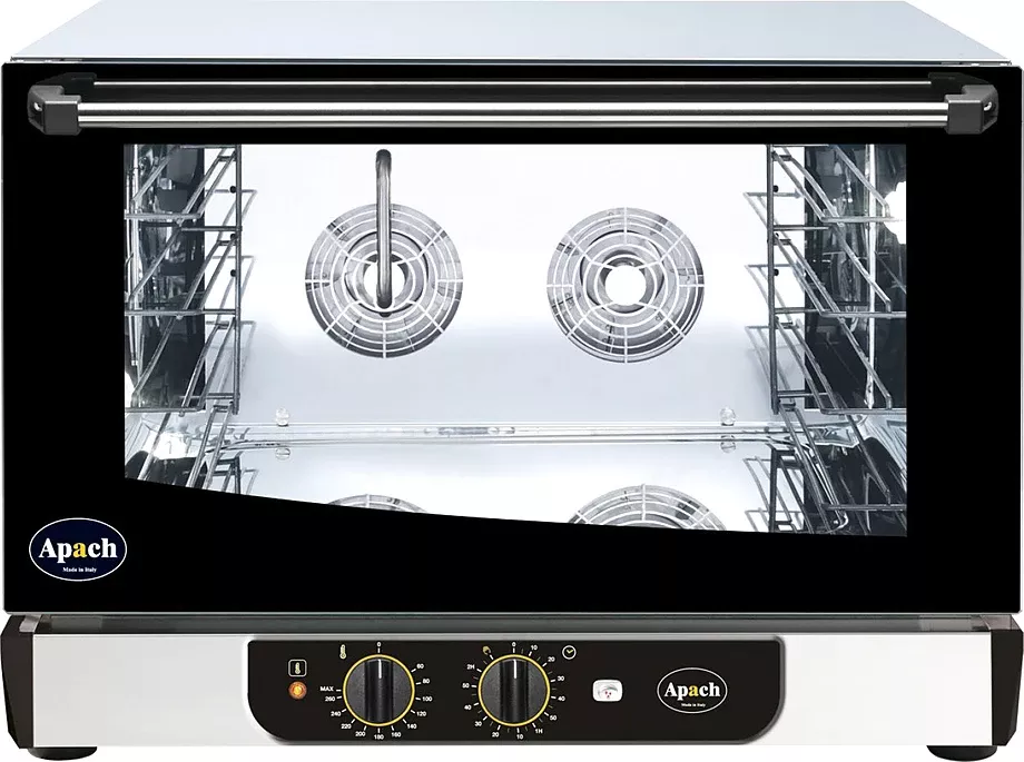 Печь конвекционная электрическая Apach AD46M предназначена для выпекания или разогрева кондитерских и хлебобулочных изделий, готовых блюд, замороженных или предварительно выдержанных в расстоечном шкафу заготовок из теста на предприятиях пищевой промышленности, общественного питания и торговли.