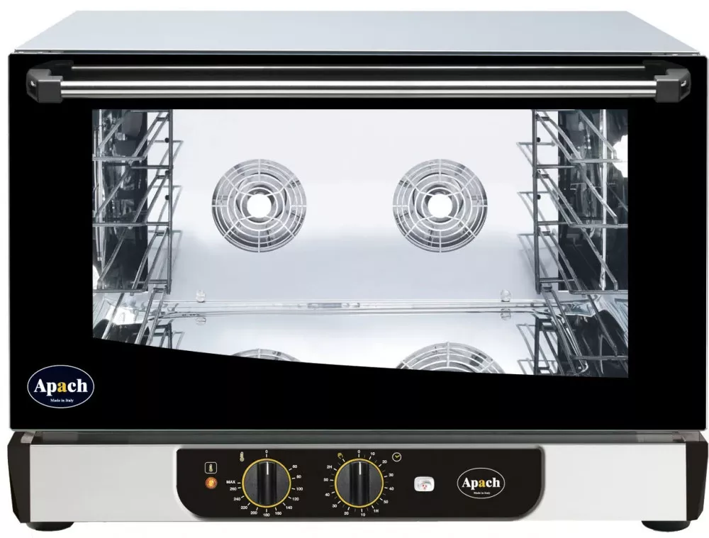 Печь конвекционная электрическая Apach AD46M предназначена для выпекания или разогрева кондитерских и хлебобулочных изделий, готовых блюд, замороженных или предварительно выдержанных в расстоечном шкафу заготовок из теста на предприятиях пищевой промышленности, общественного питания и торговли.