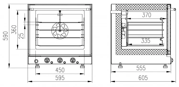 Два режима: конвекционный и грильПроизводительность до 18 кг/час мелкоштучных изделий