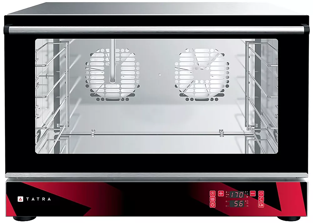 Печь конвекционная электрическая Tatra TO46DIHS предназначена для использования на предприятиях общественного питания малого и среднего формата для выпекания различных кондитерских и хлебобулочных изделий из свежего и замороженного теста с применением режимов сочетания конвекции и пара.