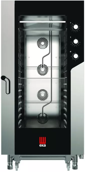 Печь конвекционная электрическая Tecnoeka MKF 1664 S серии Millenial Smart используется для выпечки мелкоштучных булочных и кондитерских изделий, однако за счет возможности установки температуры нагрева от 100 °C до 275 °C, в ней можно готовить замороженные полуфабрикаты и разогревать готовые блюда.