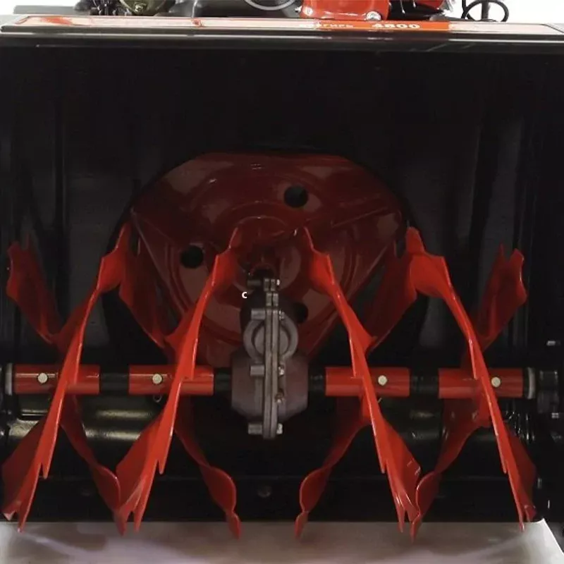 7-ступенчатая коробка передач позволяет адаптировать бензиновый снегоуборщик под конкретные условия работы и скорость уборки. Высота захвата составляет 54 см, что подходит для чистки высоких сугробов. При необходимости можно увеличить или уменьшить обороты двигателя с помощью рычажка на корпусе. Функция поможет ускорить процесс уборки или снизить потребление бензина.