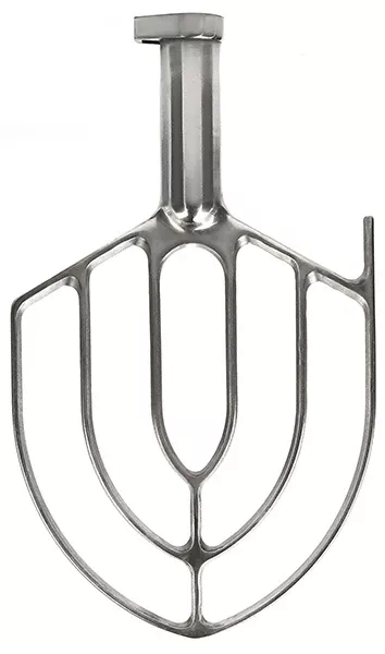 Плоский битер: обычно используется для взбивания тонкого теста для блинов, пирожных и при приготовлении картофельного пюре, а также начинки, его желательно использовать на второй скорости.