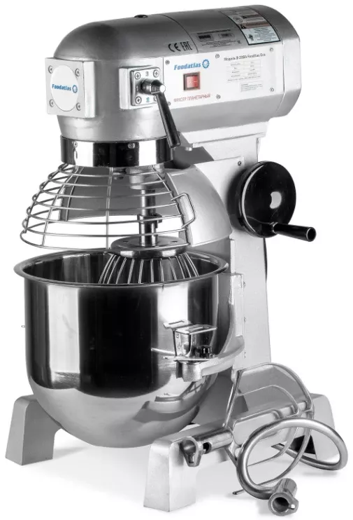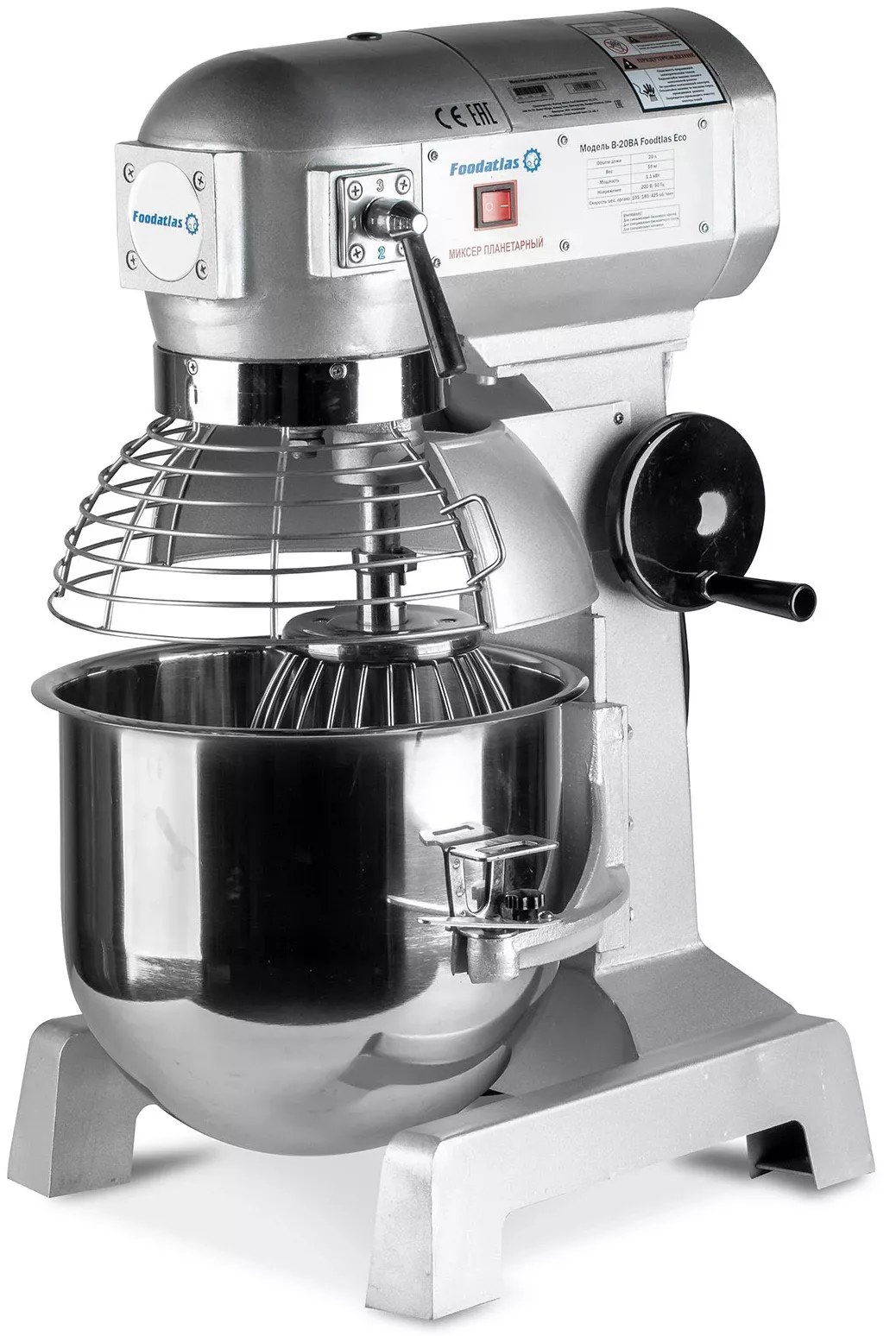 Планетарный миксер FoodAtlas Eco B-20BA используется на предприятиях общественного питания и торговли замеса жидкого теста, кремов, начинок и прочих жидкостей.